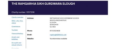 Charity Name: THE RAMGARHIA SIKH GURDWARA SLOUGH