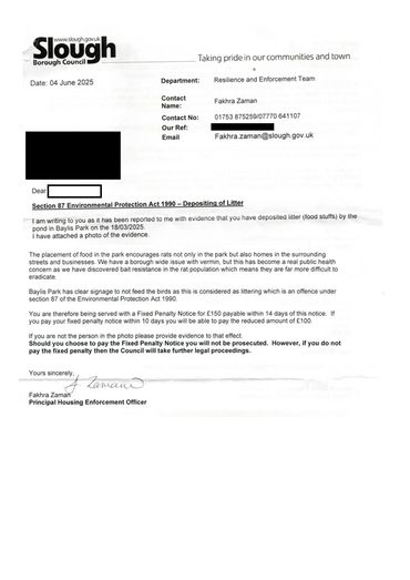 There is explicit signage on the large board which is at the entrance to the park, we have also had quite a few new signs put around and near the pond area advising residents not to feed the birds as this activity is encouraging rats in the area. I have pictures of the signs.